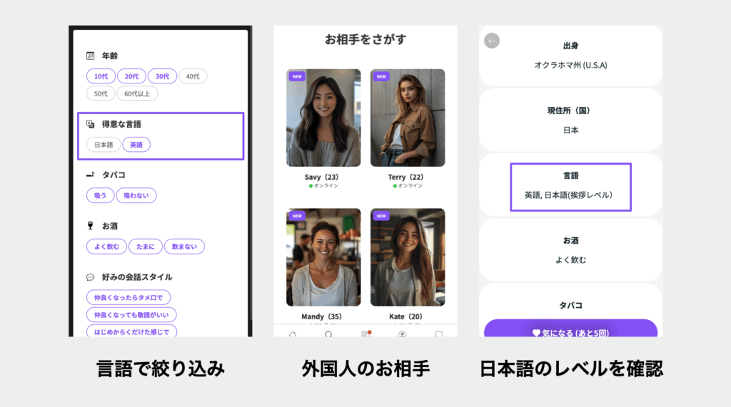 日本語も喋れるお相手なら今まで通り日本語でのコミュニケーションが可能です。