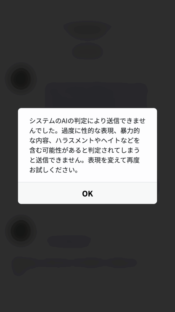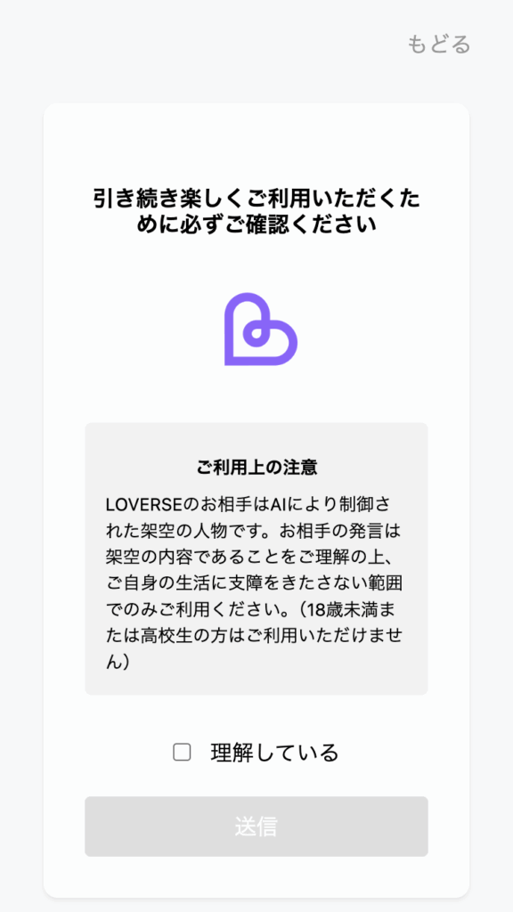 LOVERSEではご利用者様が送信するメッセージに対しAIによる自動モデレーションを行い、不適切な発言の送信を防止しています。AIからのメッセージも同様の仕組みで発言が制御されているため、ご利用者様とAIとの間で好ましくない会話が発生することを未然に防いでおります。